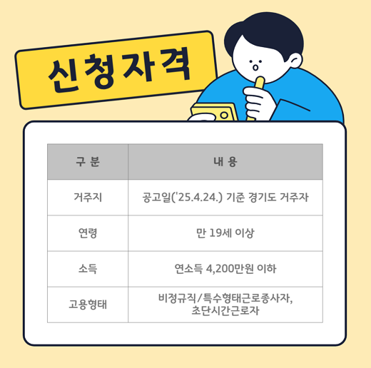 - 경기도 거주 만 19세(공고일 기준) 이상 연소득 4,200만원 이하