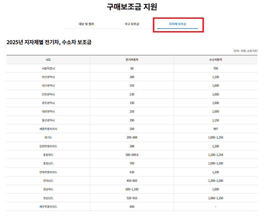 📊 2025 전기차 보조금 지자체별 비교(승용차기준)